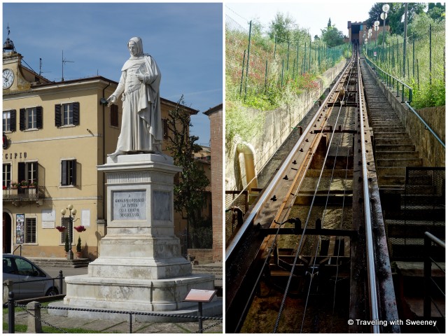 The ancient treasures of Certaldo are in its upper historic center, Certaldo Alta. To begin our stroll there, we opted to take the funicular railway to reach Via Giovanni Boccaccio in just a couple of minutes. It is also reachable on foot (about a 10 minute walk), but there’s something fun about riding funiculars.