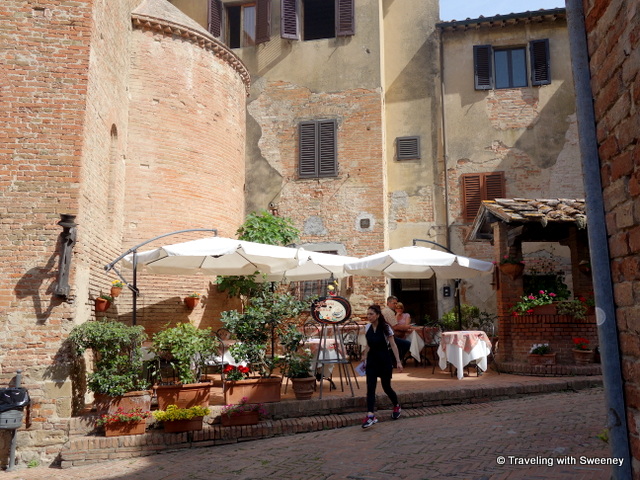 Once at the top, I felt like I had gone back in time to the early Renaissance as much of the upper town is well preserved. In the distance in the photo above, you can see the towers of San Gimignano through a slight morning haze.