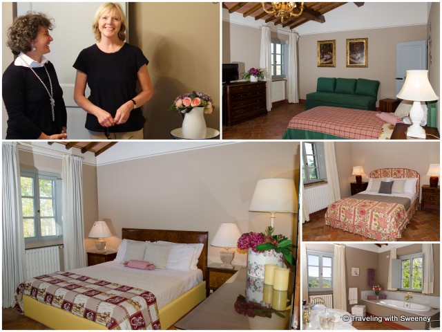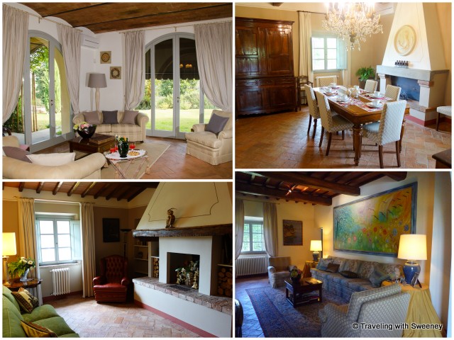 As Egle showed us around, I began to envy the guests who would be arriving soon. Blended with modern features were touches of traditional Tuscan terra cotta tiles and wooden beamed ceilings. The following photos show only a few of the rooms.