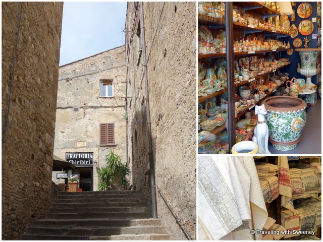San Gimignano is famous for its hand-painted ceramics, and we saw several shops, especially along the main street Via San Giovanni which is also lined with restaurants, and galleries. We passed many places that beckoned me to get a closer look. With more time, I would have visited each one, turned down every alley, and leisurely people-watched in the piazzas of San Gimignano. But I was grateful just to see this beautiful town and soak up its medieval ambiance.