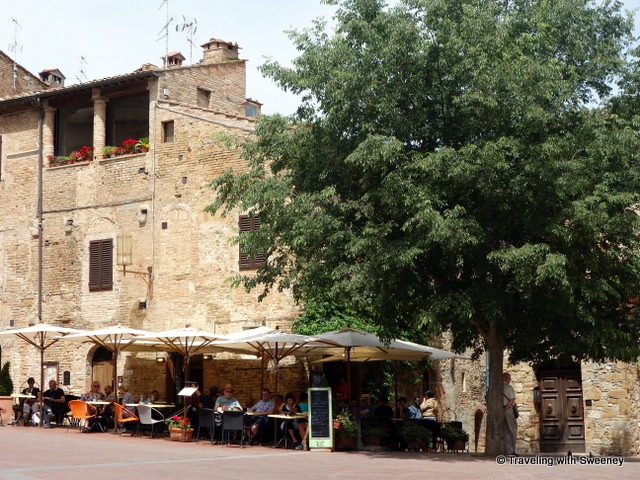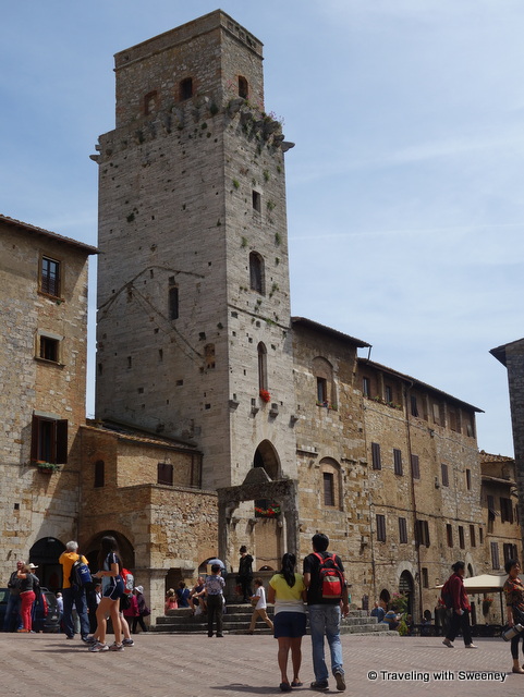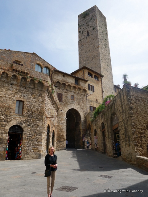 There’s an element of pleasant surprise when you pass through the arch as it opens onto beautiful Piazza della Cisterna. To the right, you see the ancient well (built in 1273) surrounded by homes, former palaces, and Towers